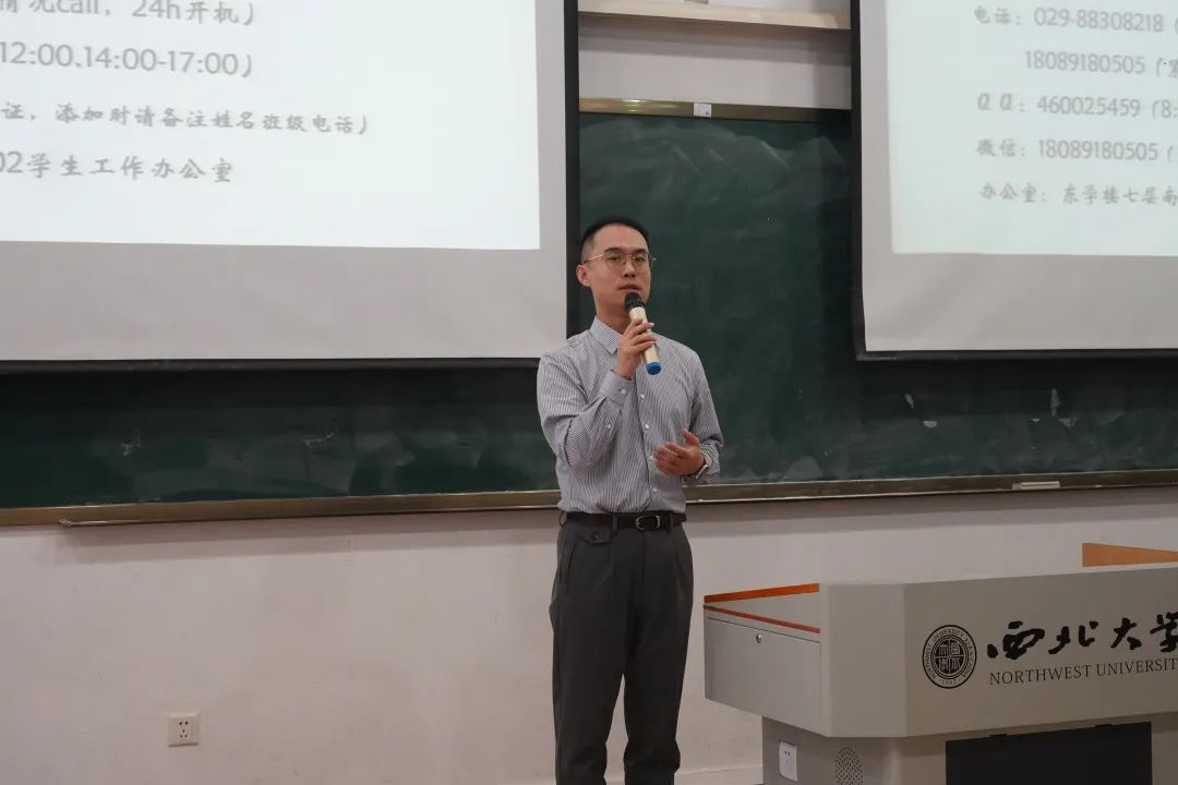 辅导员殷大惟就研究生日常工作和管理制度做了详细介绍,对研究生们接下来的在校学习和生活需要注意的事项做了补充。