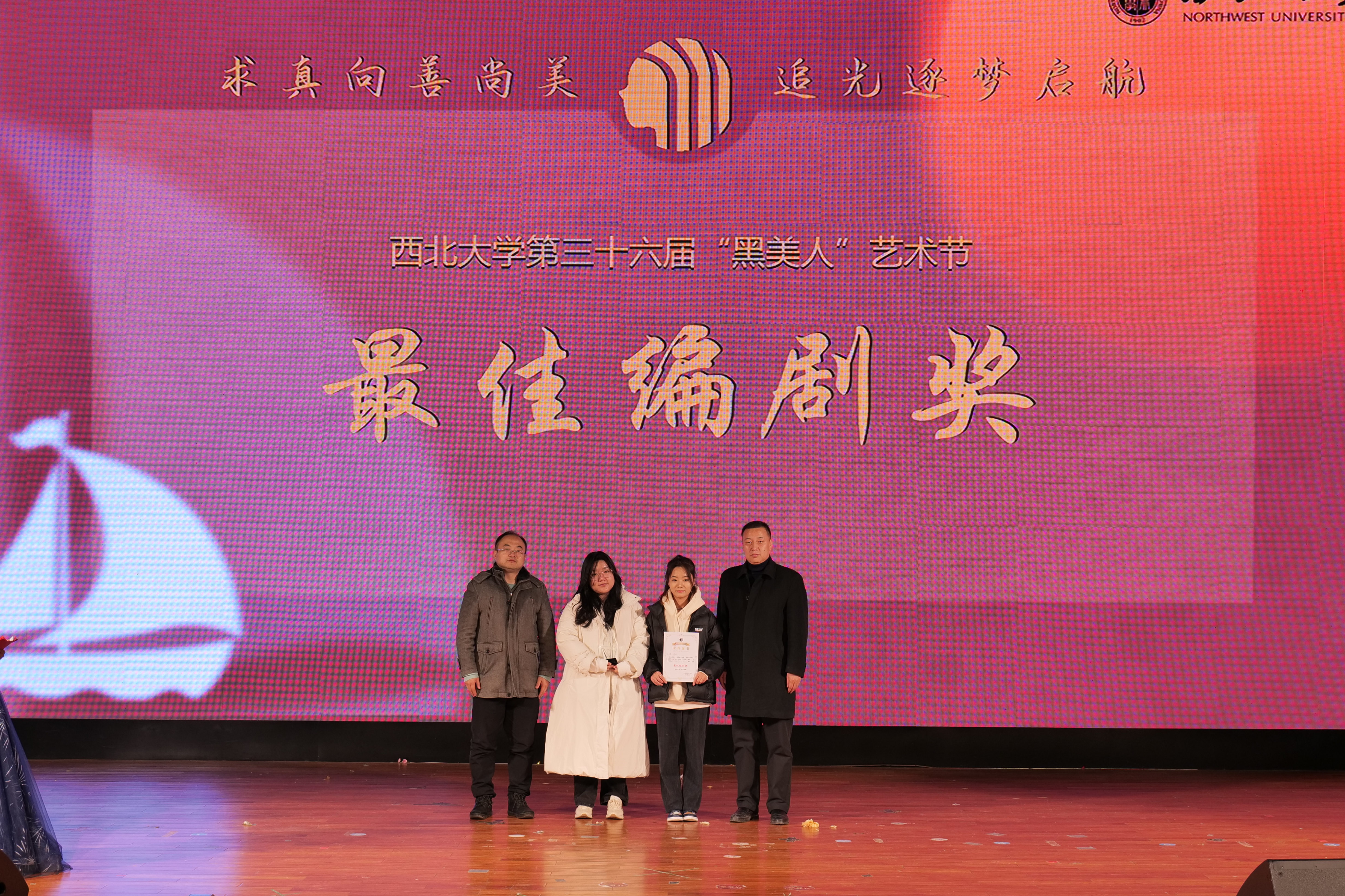 经过专家评审,王诗蓉、王宇禅获“最佳编剧奖”,张璐获“最佳导演奖”,白明才、孔令愚、王梓杰、牛帅博、马琛、刘一丹、郑舒窈、马艺伦、牛朝阳、文梦涵获“优秀演员奖”,代宇航、马凯获“最佳演员奖”,《醉与伐》获“人气剧目奖”,《穿书小镇》获“最佳剧目奖”。