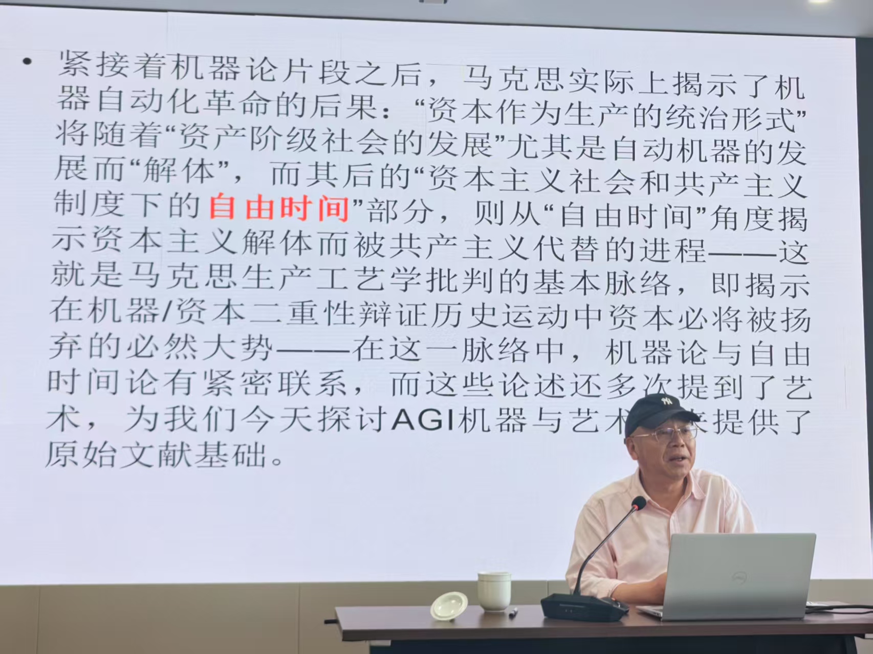 讲座伊始,刘方喜教授介绍目前国际AI格局,指出AI已成为全球教育变革的重要驱动力,AI在时代发展中居于关键地位,强调普通人也应积极参与AI学习。在谈及AGI对艺术的影响,刘方喜教授认为生成式AI大语言模型正开启艺术“自动机器大生产”革命,AGI的成熟将推动这场革命走向完成。他进一步阐述,马克思的“机器论片段”为研究提供了重要视角,AI是“社会大脑”生成的“社会智力”,与个人智力不同,且现代机器经历了物质生产和精神生产的自动化革命。从马克思的理论出发,刘方喜教授指出AGI将消除精神劳动内部“人的科学”与自然科学的分工,以及教育体制中“文科”与“理科”的隔阂。随着AI技术发展,艺术与科学的融合趋势愈发明显,AlphaFold在自然科学领域的突破便是例证。同时,AGI也将消灭精神劳动与物质劳动的分工,使每个人的劳动得到自由解放,让劳动成为像艺术创作一样自由的活动。通过解读马克思“机器论片段”中的艺术观,刘方喜教授还强调艺术不仅是意识形态,更是存在于“自由时间”中的“真正自由的劳动”。自动机器的发展改变了传统劳动方式,资本是导致个人劳动丧失自由个性的根源,而艺术创造则是具有自由个性的活动。